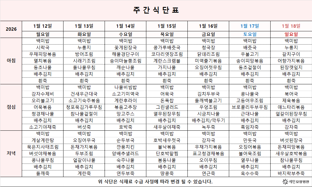 1¿ù 2ÁÖÂ÷ ½Ä´ÜÇ¥