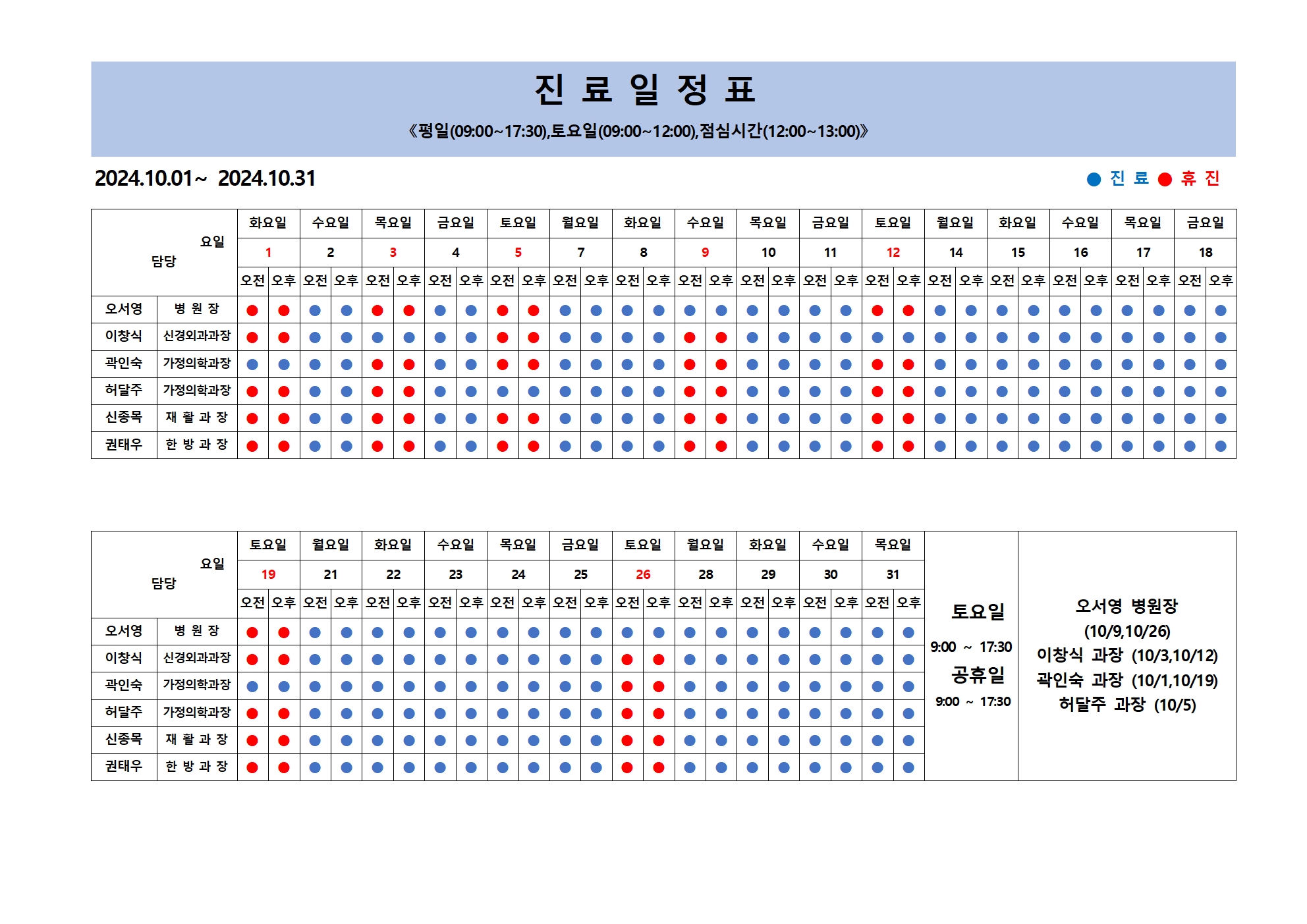 2024³â 10¿ù Áø·áÀÏÁ¤Ç¥ÀÔ´Ï´Ù.
