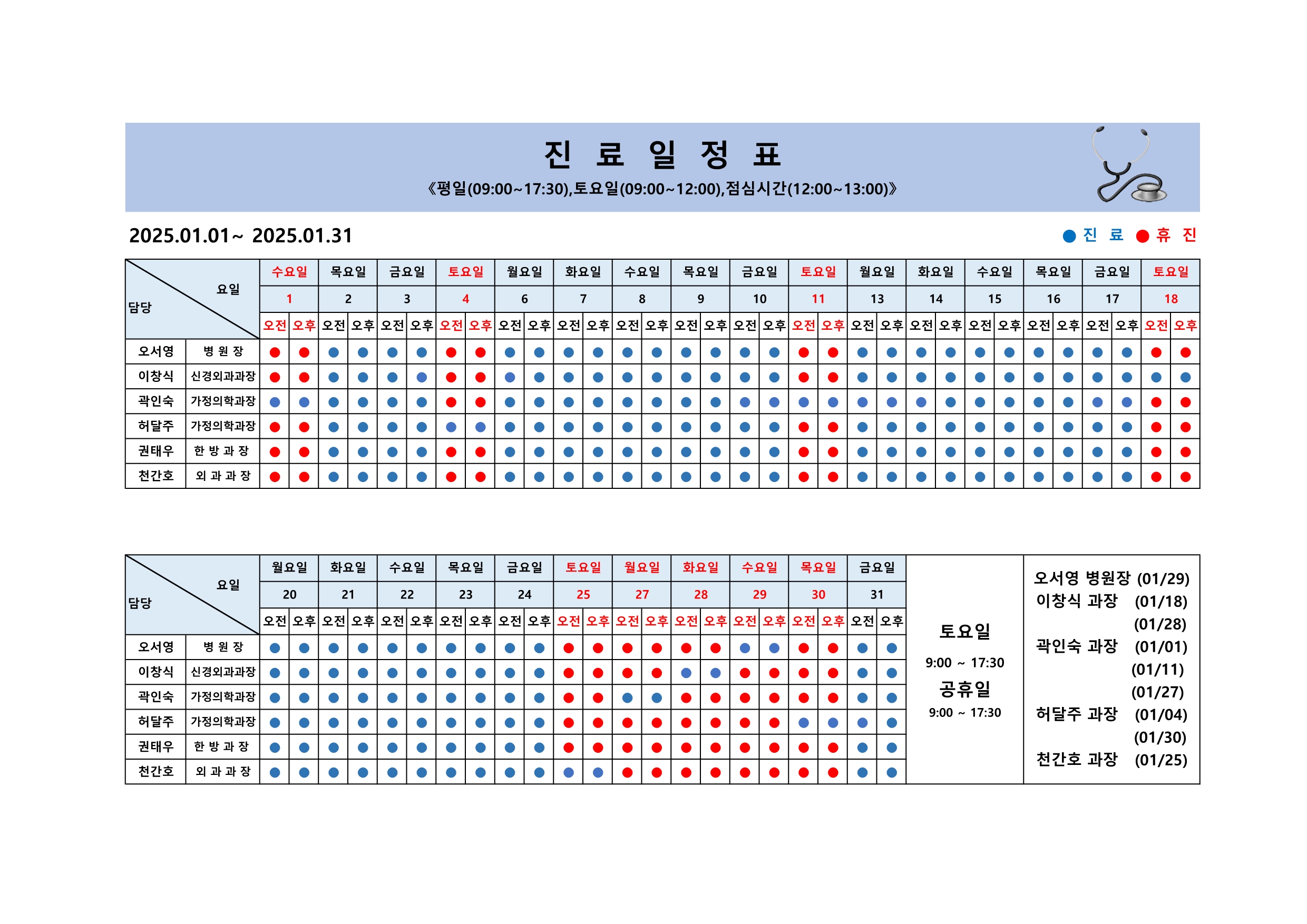 1¿ù Áø·áÀÏÁ¤Ç¥