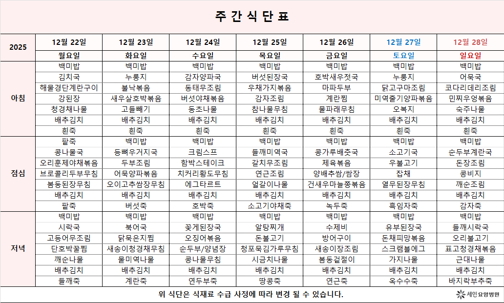 12¿ù 4ÁÖÂ÷ ½Ä´ÜÇ¥