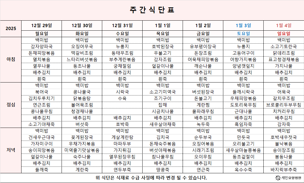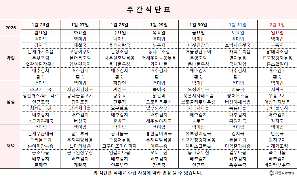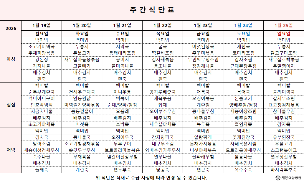 1¿ù 2ÁÖÂ÷ ½Ä´ÜÇ¥