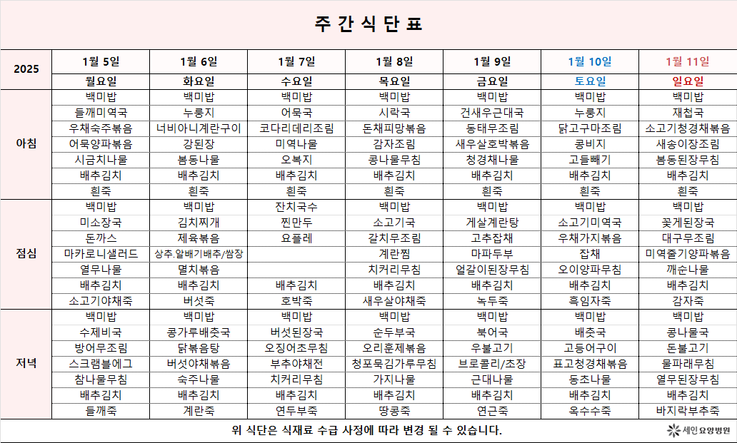 1¿ù 5ÁÖÂ÷ ½Ä´ÜÇ¥