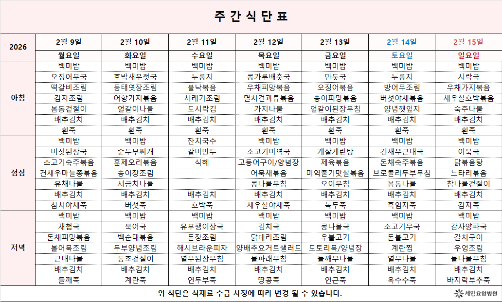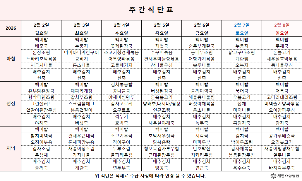 2¿ù 1ÁÖÂ÷ ½Ä´ÜÇ¥